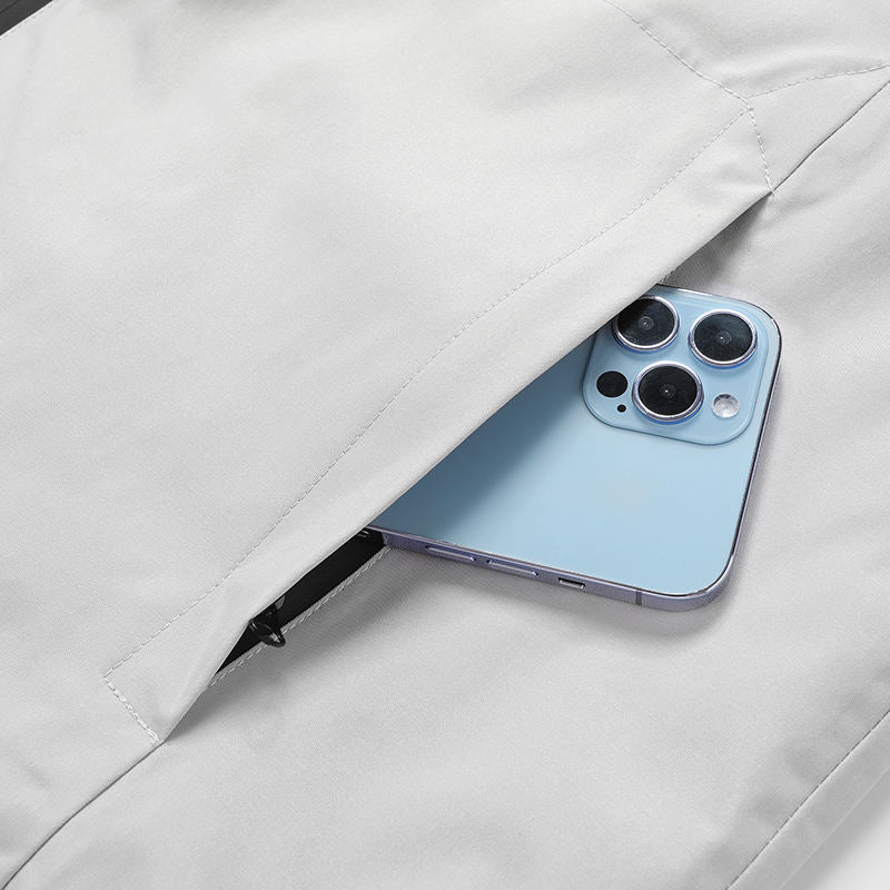 Capuche : Avec bord élargi et cordon de serrage ajustable.Poignets : Élastiques et coupe-vent.Poches : Poche poitrine zippée , poches latérales zippées à rabat , poche zippée étanche sur le bras.