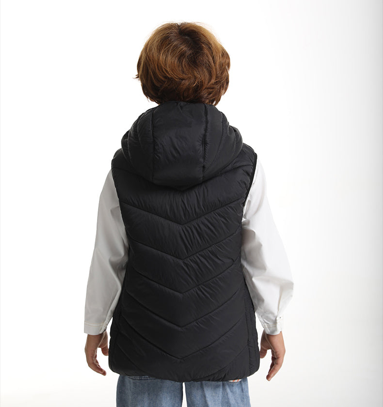 Design : Gilet sans manches avec capuche, fermeture éclair frontale, poches latérales zippées. Style matelassé en V. Confortable et non volumineux.