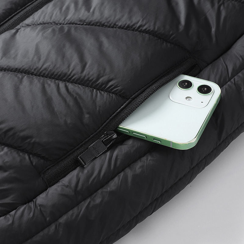 Lavable : Le gilet peut être entièrement lavé à l'eau (lavage à la main ou en machine cycle doux recommandé). L'interface d'alimentation USB est isolée et étanche.